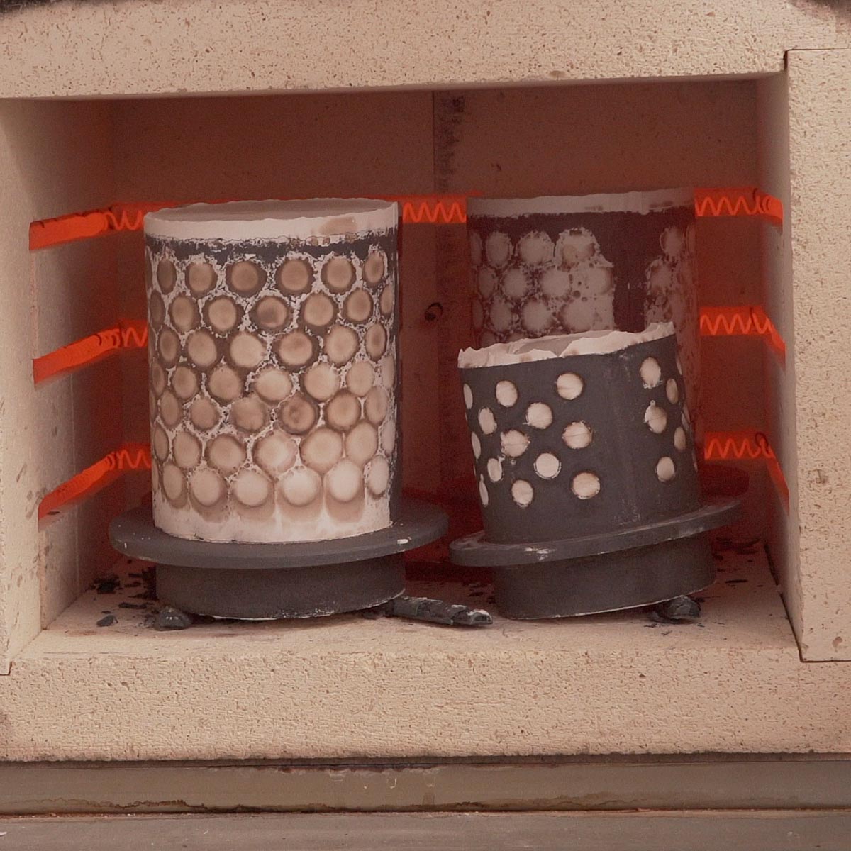 - Once at 730°C, place flasks into the kiln. (Putting cold flasks into a hot kiln will drop the temperature, possibly to 400°C (750°F)
