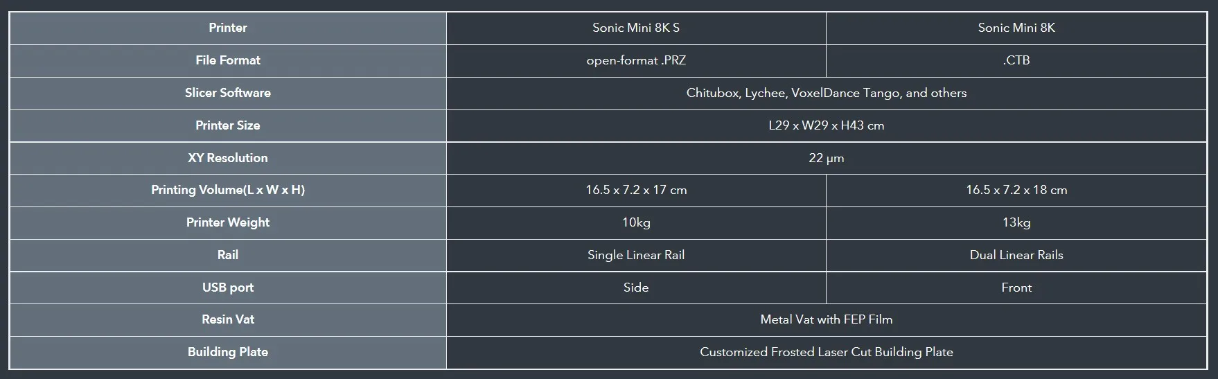 - 7.1-inch 8K monochrome LCD for ultra-high resolution printing