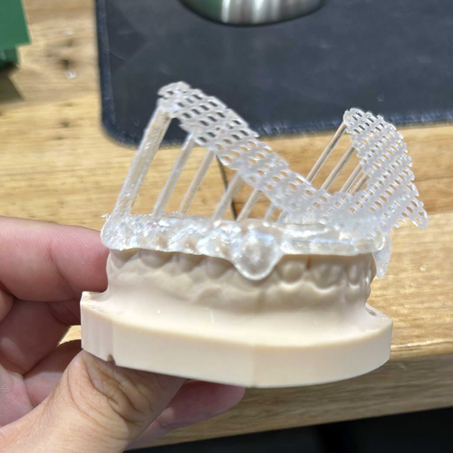 SPLINT™ is a biocompatible 3D printing resin designed for manufacturing durable dental appliances such as occlusal splints, night guards, and bite plates. This material is engineered for comfort and long-term wear and delivers excellent fracture resistance, precise fit, and dimensional stability. SPLINT™ is compatible with most MSLA and DLP 3D printers and offers a smooth, ultra-clear finish straight from the printer, reducing post-processing time.