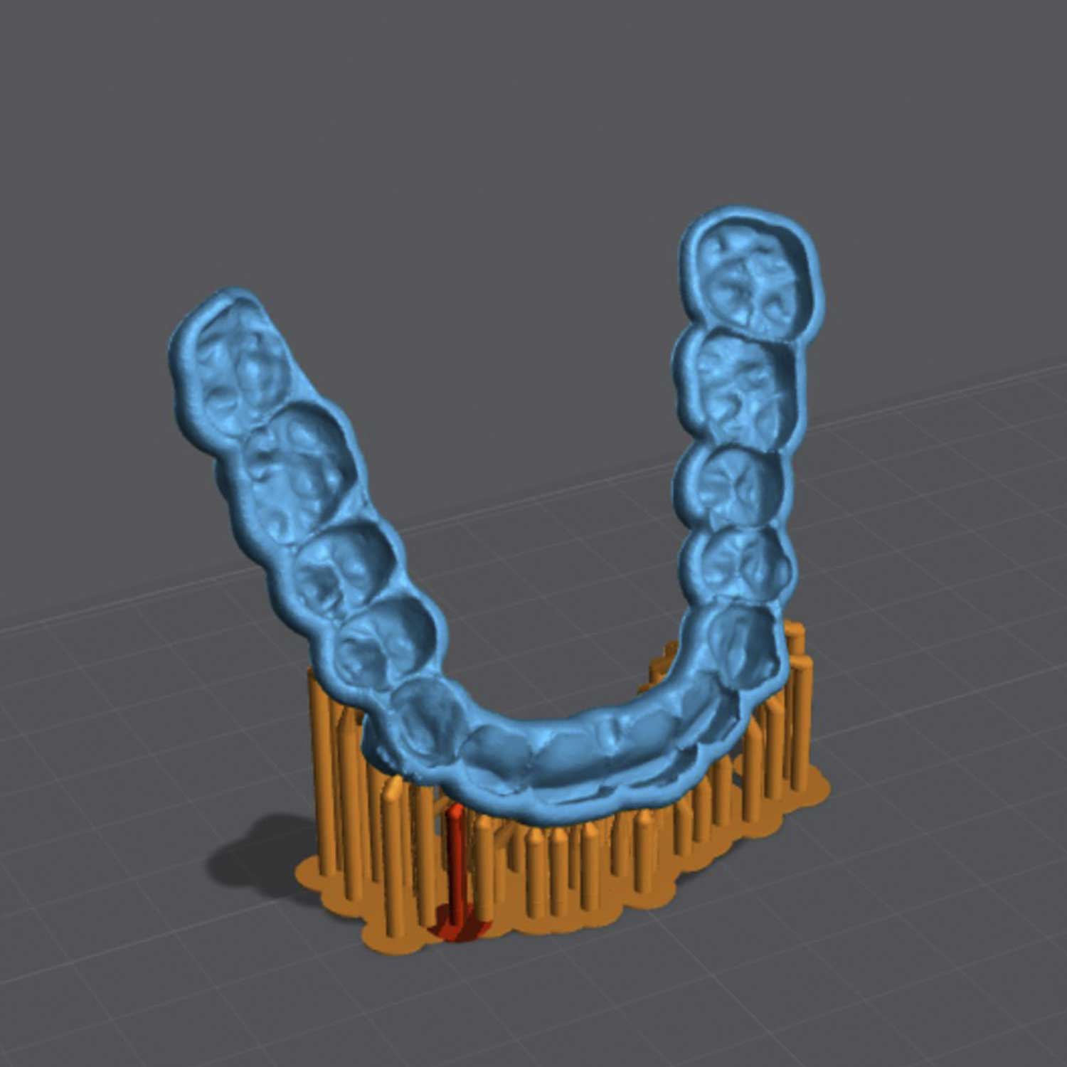Try to position the occlusal surfaces away from the build plate to auto-generate the placement of support structures. You can add or remove supports where necessary.
